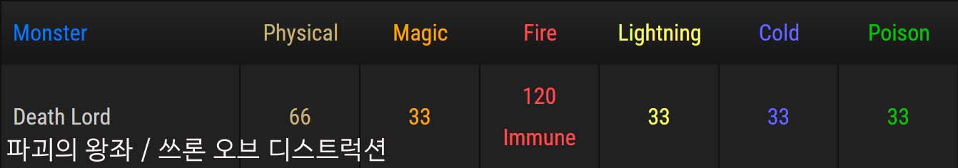 파괴의 왕좌 / 쓰론 오브 디스트럭션 / THRONE OF DESTRUCTION - 몬스터 내성 / 이뮨 정보