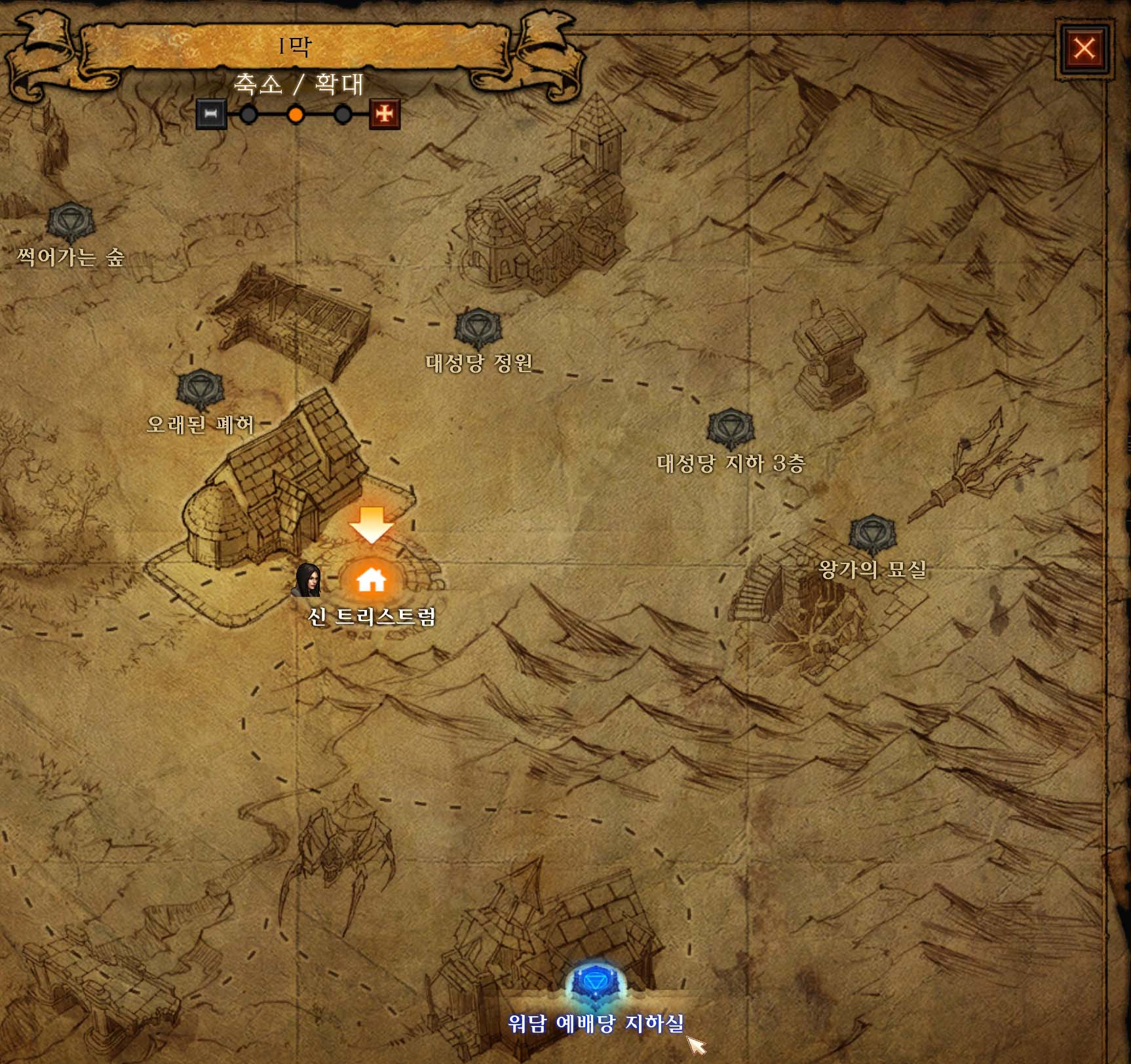 신 트리스트럼에서 워담 예배당 지하실로 이동