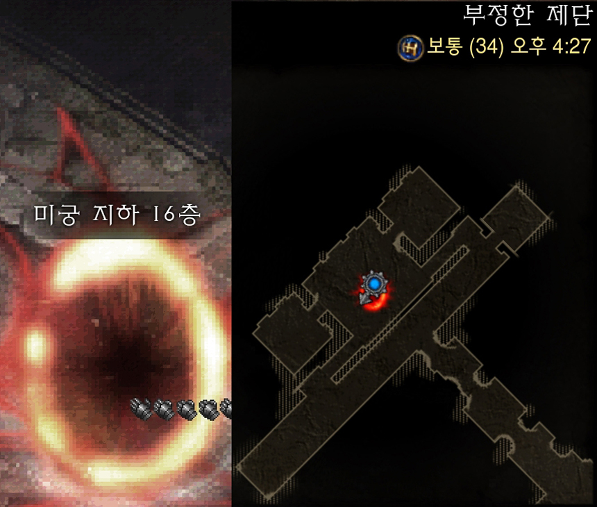 부정한 제단 맵에서 미궁 지하 16층 포탈 생성